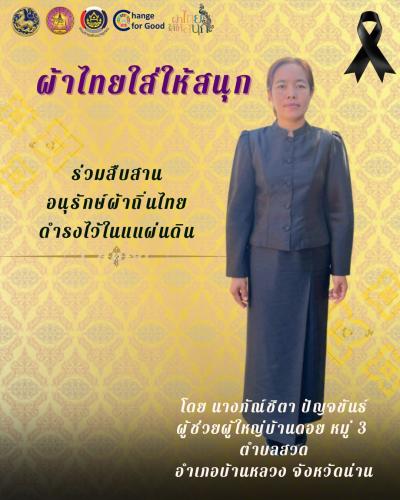อำเภอบ้านหลวง...ร่วมรณรงค์ประชาสัมพันธ์เชิญชวนให้สวมใส่ผ้าไทย สืบสานอนุรักษ์ผ้าถิ่นไทย ดำรงไว้ในแผ่นดิน ตามโครงการ "ผ้าไทยใส่ให้สนุก" โดย นางภัณ์ชิตา ปัญจขันธ์ ผู้ช่วยผู้ใหญ่บ้าน